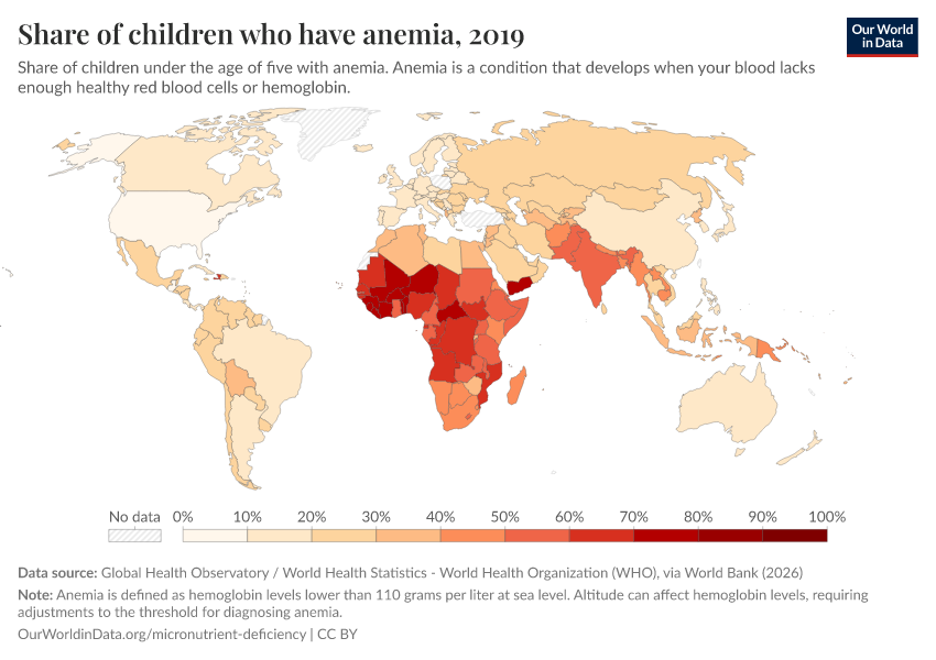 Hannah Ritchie (2024) - “Billions of people suffer from anemia, but there are cheap ways to reduce this” Published online at OurWorldinData.org. Retrieved from: 'https://data-childlabor-ilounicef.owid.pages.dev:8789/20260304-094028/billions-people-suffer-anemia-cheap-ways-reduce.html' [Online Resource] (archived on March 4, 2026).BibTeX citation