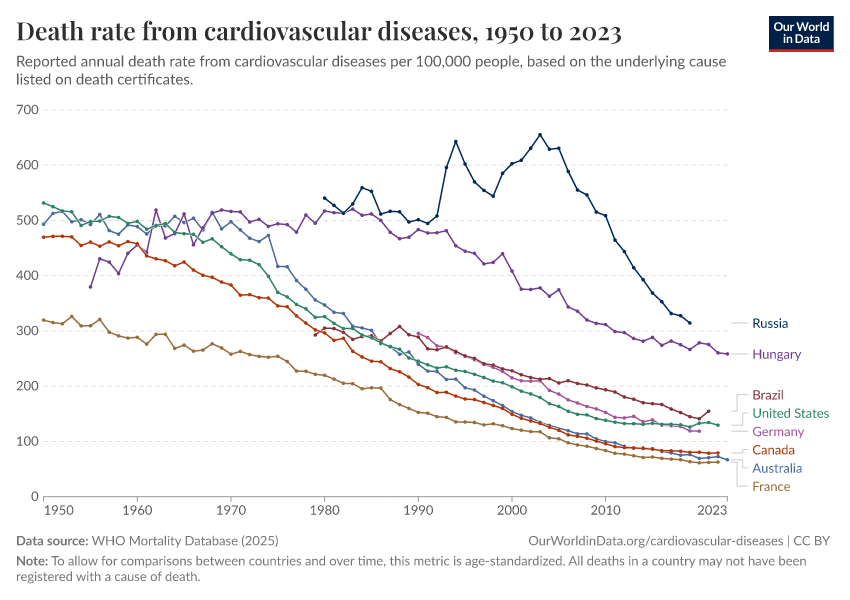 The rising death toll is largely due to a growing and aging global population. Death rates from cardiovascular diseases have actually fallen in many countries – as our ability to prevent and treat them has improved.