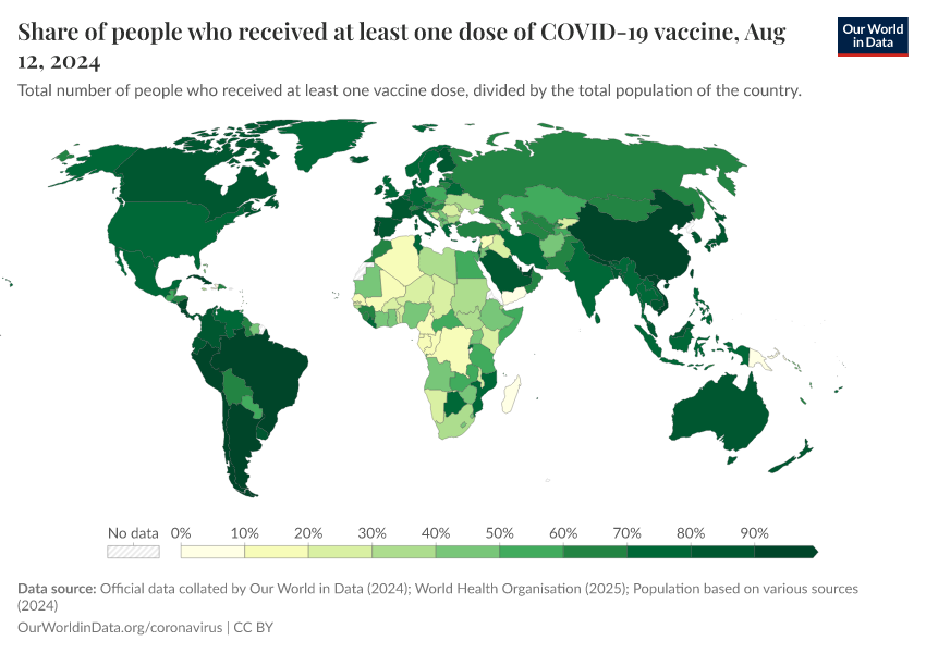 Edouard Mathieu, Hannah Ritchie, Lucas Rodés-Guirao, Cameron Appel, Daniel Gavrilov, Charlie Giattino, Joe Hasell, Bobbie Macdonald, Saloni Dattani, Diana Beltekian, Esteban Ortiz-Ospina, and Max Roser (2020) - “Coronavirus (COVID-19) Vaccinations” Published online at OurWorldinData.org. Retrieved from: 'https://data-childlabor-ilounicef.owid.pages.dev:8789/20260408-064336/covid-vaccinations.html' [Online Resource] (archived on April 8, 2026).BibTeX citation