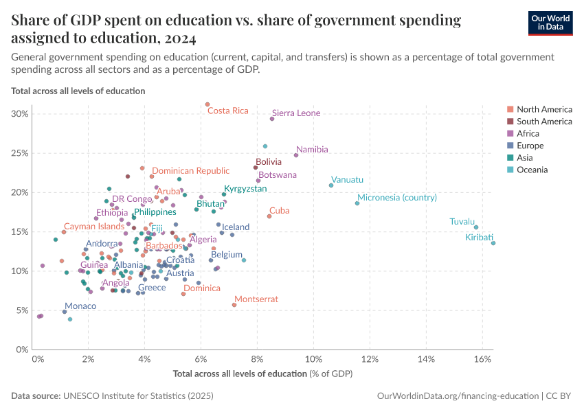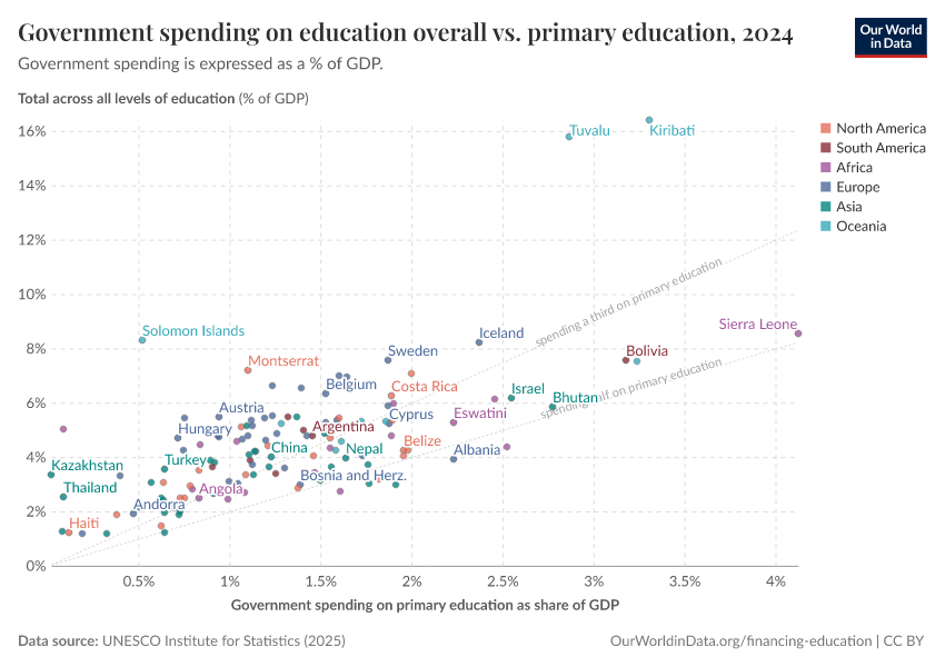 Max Roser and Esteban Ortiz-Ospina (2016) - “Education Spending” Published online at OurWorldinData.org. Retrieved from: 'https://data-childlabor-ilounicef.owid.pages.dev/financing-education' [Online Resource]BibTeX citation
