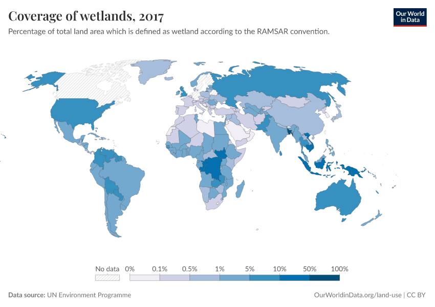 “Data Page: Coverage of wetlands”. Our World in Data (2026). Data adapted from UN Environment Programme. Retrieved from https://data-childlabor-ilounicef.owid.pages.dev:8789/20260304-094028/grapher/coverage-of-wetlands.html [online resource] (archived on March 4, 2026).How to cite this data