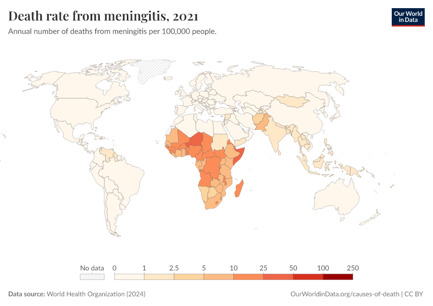 “Data Page: Death rate from meningitis”, part of the following publication: Esteban Ortiz-Ospina and Max Roser (2016) - “Global Health”. Data adapted from World Health Organization. Retrieved from https://data-childlabor-ilounicef.owid.pages.dev:8789/20260325-171315/grapher/death-rate-from-meningitis-who.html [online resource] (archived on March 25, 2026).How to cite this data