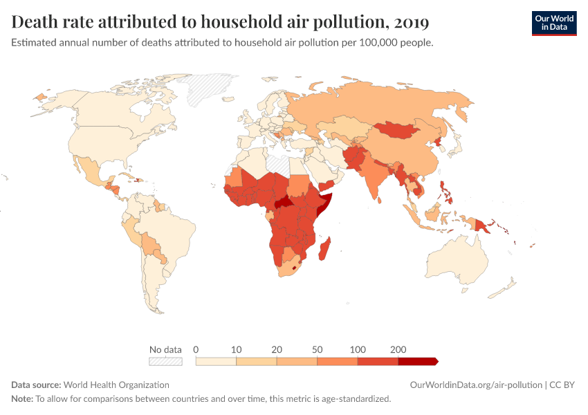 “Data Page: Death rate attributed to household air pollution”. Our World in Data (2026). Data adapted from World Health Organization. Retrieved from https://data-childlabor-ilounicef.owid.pages.dev:8789/20260304-094028/grapher/death-rate-household-air-pollution.html [online resource] (archived on March 4, 2026).How to cite this data