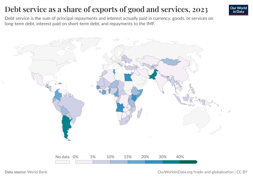 “Data Page: Debt service as a share of exports of good and services”. Our World in Data (2026). Data adapted from World Bank. Retrieved from https://data-childlabor-ilounicef.owid.pages.dev:8789/20260304-094028/grapher/debt-service-of-exports-of-goods-services.html [online resource] (archived on March 4, 2026).How to cite this data