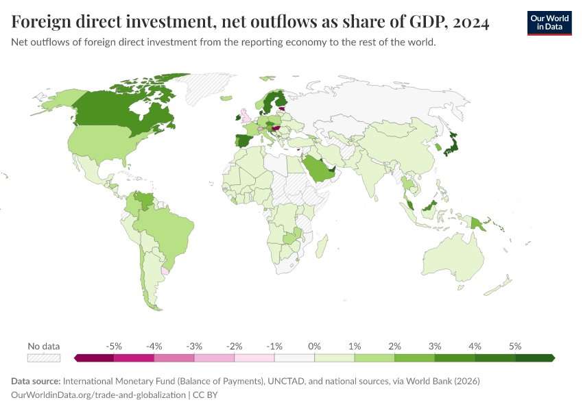 “Data Page: Foreign direct investment, net outflows as share of GDP”. Our World in Data (2026). Data adapted from International Monetary Fund (Balance of Payments), UNCTAD, and national sources, via World Bank. Retrieved from https://data-childlabor-ilounicef.owid.pages.dev:8789/20260304-094028/grapher/foreign-direct-investment-net-outflows-as-share-of-gdp.html [online resource] (archived on March 4, 2026).How to cite this data