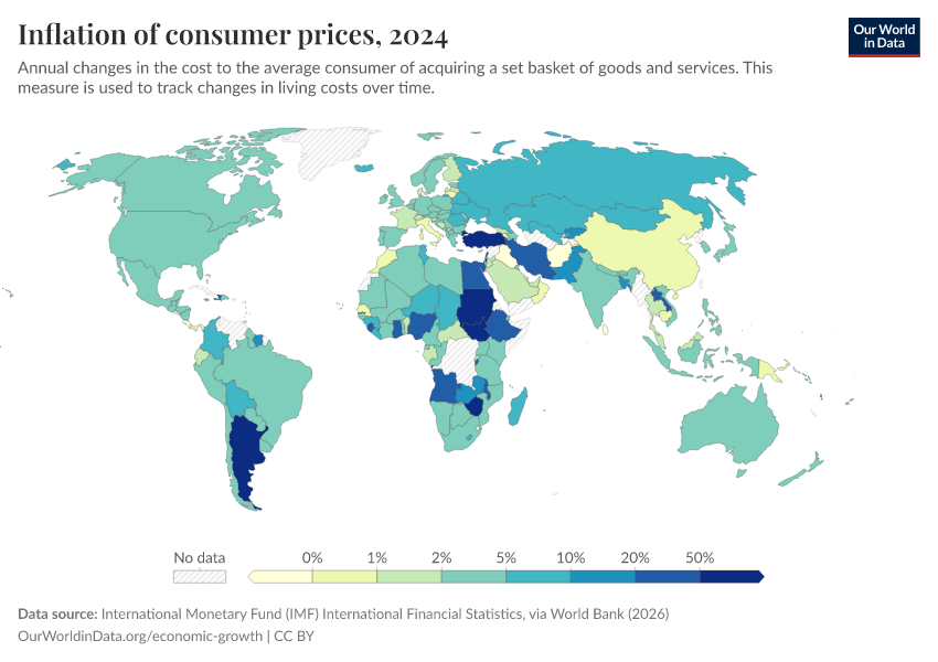 “Data Page: Inflation of consumer prices”. Our World in Data (2026). Data adapted from International Monetary Fund (IMF) International Financial Statistics, via World Bank. Retrieved from https://data-childlabor-ilounicef.owid.pages.dev:8789/20260304-094028/grapher/inflation-of-consumer-prices.html [online resource] (archived on March 4, 2026).How to cite this data