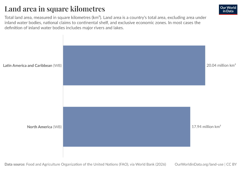 “Data Page: Land area in square kilometres”. Our World in Data (2026). Data adapted from Food and Agriculture Organization of the United Nations (FAO), via World Bank. Retrieved from https://data-childlabor-ilounicef.owid.pages.dev:8789/20260304-094028/grapher/land-area-km.html [online resource] (archived on March 4, 2026).How to cite this data