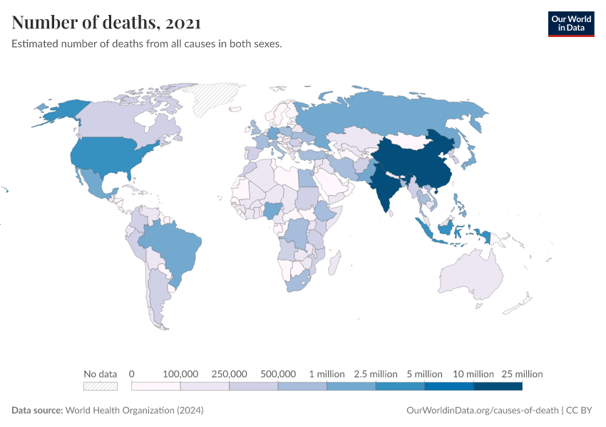 “Data Page: Number of deaths”, part of the following publication: Esteban Ortiz-Ospina and Max Roser (2016) - “Global Health”. Data adapted from World Health Organization. Retrieved from https://data-childlabor-ilounicef.owid.pages.dev:8789/20260325-171315/grapher/number-of-deaths-who.html [online resource] (archived on March 25, 2026).How to cite this data