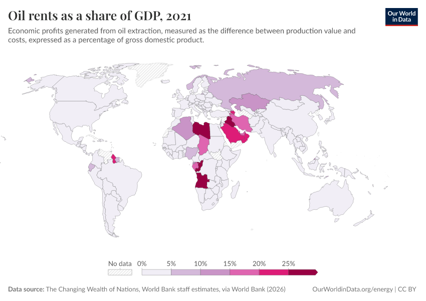 “Data Page: Oil rents as a share of GDP”. Our World in Data (2026). Data adapted from The Changing Wealth of Nations, World Bank staff estimates, via World Bank. Retrieved from https://data-childlabor-ilounicef.owid.pages.dev:8789/20260304-094028/grapher/oil-rents-as-a-share-of-gdp.html [online resource] (archived on March 4, 2026).How to cite this data