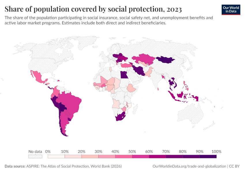 “Data Page: Share of population covered by social protection”. Our World in Data (2026). Data adapted from ASPIRE: The Atlas of Social Protection, World Bank. Retrieved from https://data-childlabor-ilounicef.owid.pages.dev:8789/20260304-094028/grapher/share-of-population-covered-by-social-protection.html [online resource] (archived on March 4, 2026).How to cite this data
