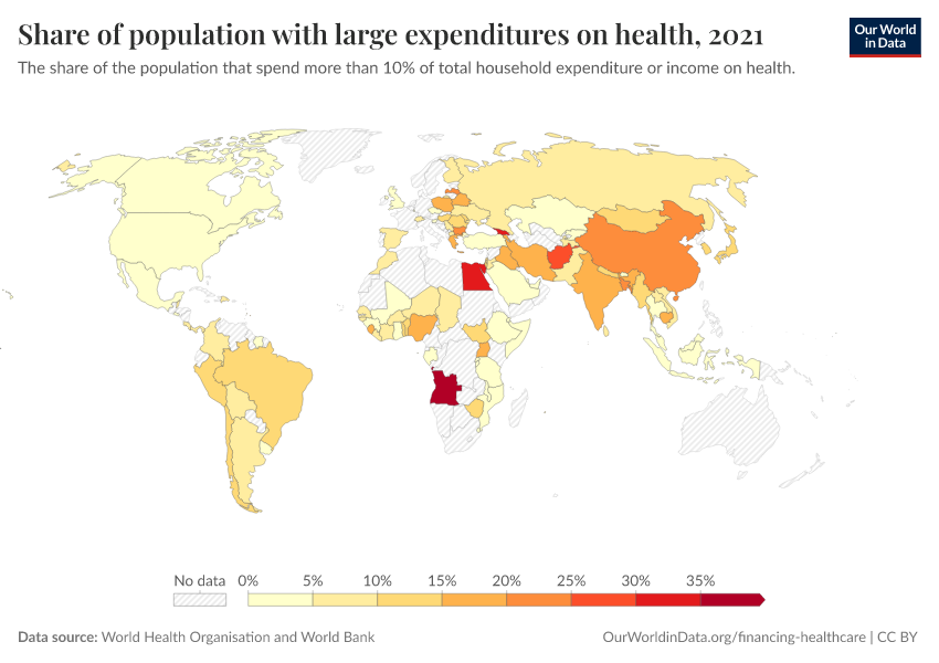 “Data Page: Share of population with large expenditures on health”. Our World in Data (2026). Data adapted from World Health Organisation and World Bank. Retrieved from https://data-childlabor-ilounicef.owid.pages.dev:8789/20260304-094028/grapher/share-of-population-with-large-household-expenditures-on-health-10pc.html [online resource] (archived on March 4, 2026).How to cite this data