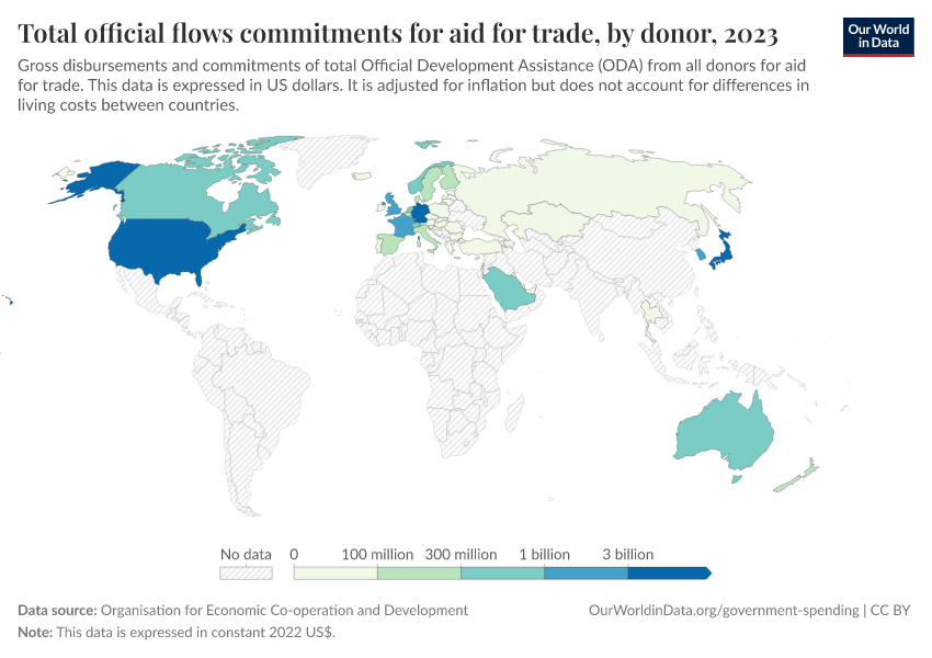 “Data Page: Total official flows commitments for aid for trade, by donor”. Our World in Data (2026). Data adapted from Organisation for Economic Co-operation and Development. Retrieved from https://data-childlabor-ilounicef.owid.pages.dev:8789/20260304-094028/grapher/total-oda-for-aid-for-trade-by-donor.html [online resource] (archived on March 4, 2026).How to cite this data