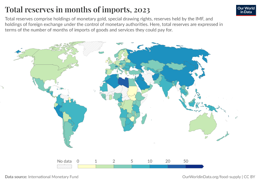 “Data Page: Total reserves in months of imports”. Our World in Data (2026). Data adapted from International Monetary Fund. Retrieved from https://data-childlabor-ilounicef.owid.pages.dev:8789/20260304-094028/grapher/total-reserves-in-months-of-imports.html [online resource] (archived on March 4, 2026).How to cite this data