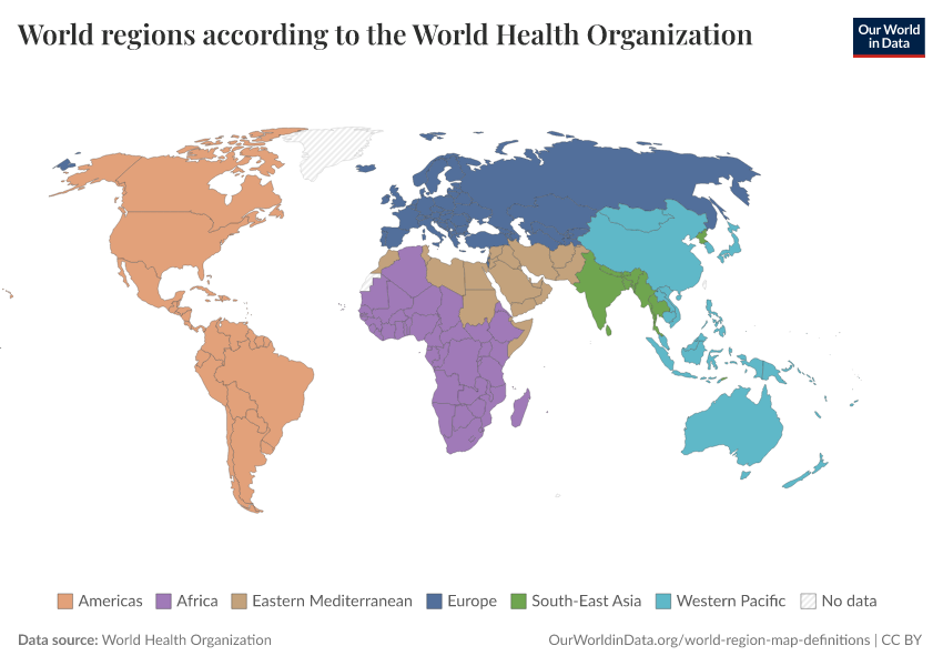 “Data Page: World regions according to the World Health Organization”. Our World in Data (2026). Data adapted from World Health Organization. Retrieved from https://data-childlabor-ilounicef.owid.pages.dev:8789/20260325-171315/grapher/who-regions.html [online resource] (archived on March 25, 2026).How to cite this data