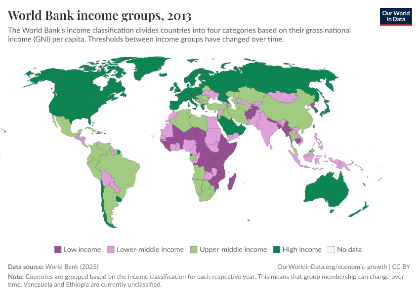 “Data Page: World Bank income groups”, part of the following publication: Max Roser, Bertha Rohenkohl, Pablo Arriagada, Joe Hasell, Hannah Ritchie, and Esteban Ortiz-Ospina (2023) - “Economic Growth”. Data adapted from World Bank. Retrieved from https://data-childlabor-ilounicef.owid.pages.dev:8789/20260304-094028/grapher/world-bank-income-groups.html [online resource] (archived on March 4, 2026).How to cite this data