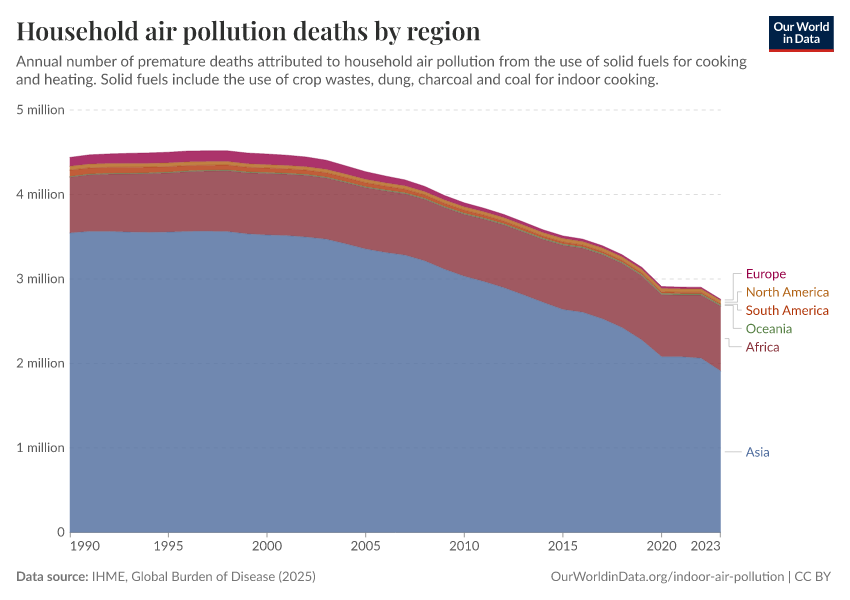 You can explore data on the number of deaths from indoor air pollution across the world here.