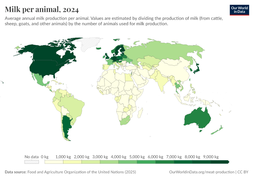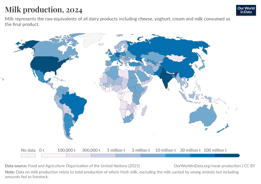 Hannah Ritchie, Pablo Rosado, and Max Roser (2019) - “Meat and Dairy Production” Published online at OurWorldinData.org. Retrieved from: 'https://data-childlabor-ilounicef.owid.pages.dev/meat-production' [Online Resource]BibTeX citation