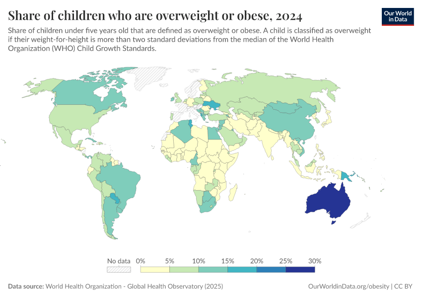 Hannah Ritchie and Max Roser (2017) - “Obesity” Published online at OurWorldinData.org. Retrieved from: 'https://data-childlabor-ilounicef.owid.pages.dev/obesity' [Online Resource]BibTeX citation