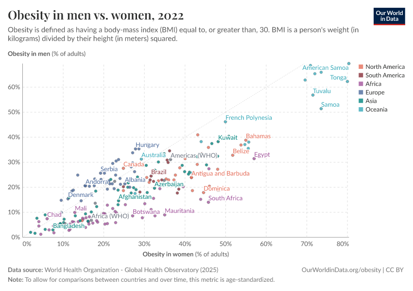 On this page, you will find global data and research on obesity — its prevalence, drivers, health consequences, and trends over time.