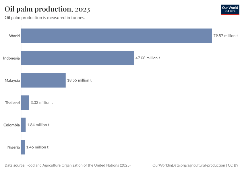 Hannah Ritchie (2021) - “Palm Oil” Published online at OurWorldinData.org. Retrieved from: 'https://data-childlabor-ilounicef.owid.pages.dev:8789/20260306-182349/palm-oil.html' [Online Resource] (archived on March 6, 2026).BibTeX citation