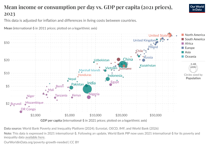 When the average of people’s income in a country is that low, then the only way the majority of people can possibly leave poverty behind is when that country’s economy grows so that average incomes increase.
