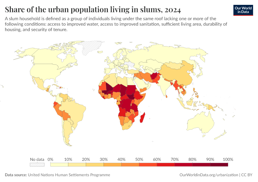 Internationally comparable data for the proportion of the urban population living in slums is not currently available.