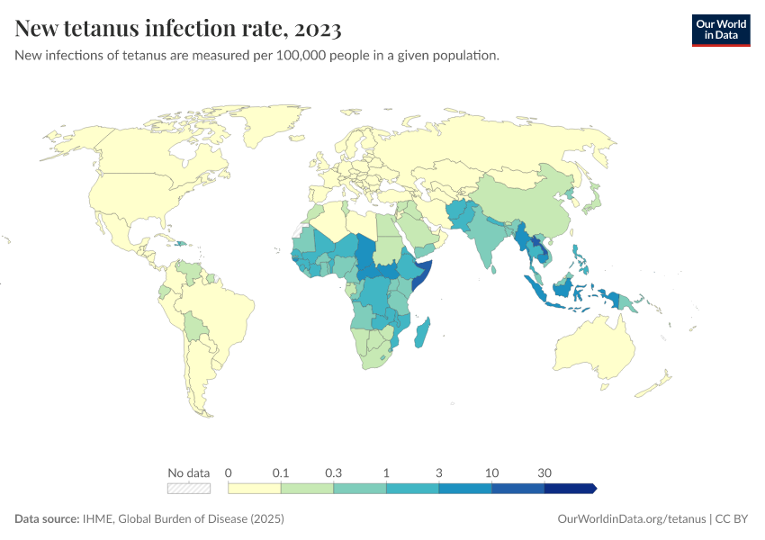 Hannah Behrens, Sophie Ochmann, Bernadeta Dadonaite, and Max Roser (2019) - “Tetanus” Published online at OurWorldinData.org. Retrieved from: 'https://data-childlabor-ilounicef.owid.pages.dev/tetanus' [Online Resource]BibTeX citation