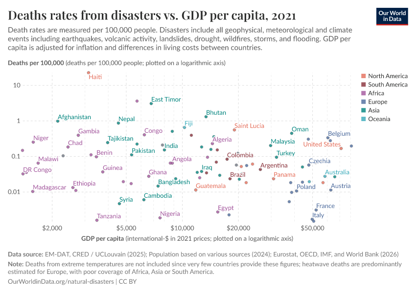 Hannah Ritchie (2024) - “The world has become more resilient to disasters, but investment is needed to save more lives” Published online at OurWorldinData.org. Retrieved from: 'https://data-childlabor-ilounicef.owid.pages.dev:8789/20260402-173937/the-world-has-become-more-resilient-to-disasters-but-investment-is-needed-to-save-more-lives.html' [Online Resource] (archived on April 2, 2026).BibTeX citation